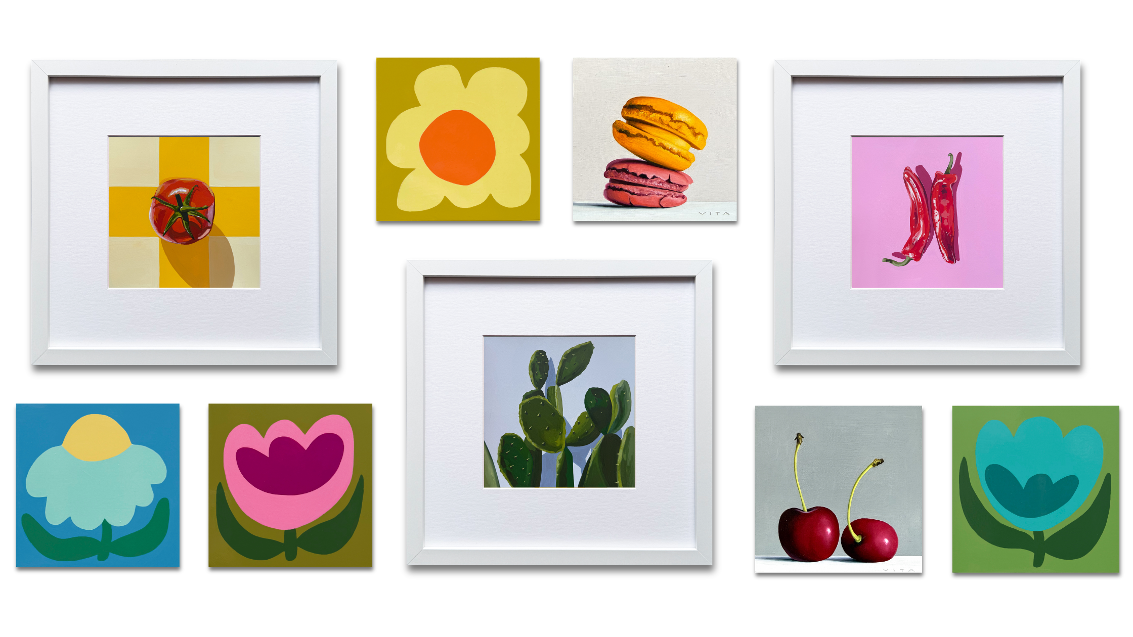Discover a joyful collection of original paintings. Each piece is unique, ready to bring color, character, and a sense of delight into your space!