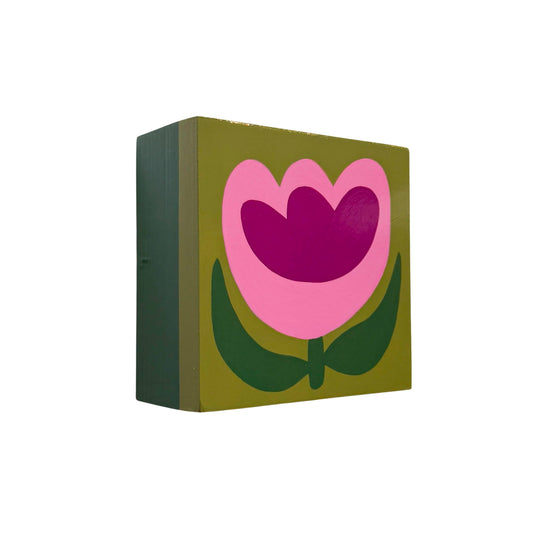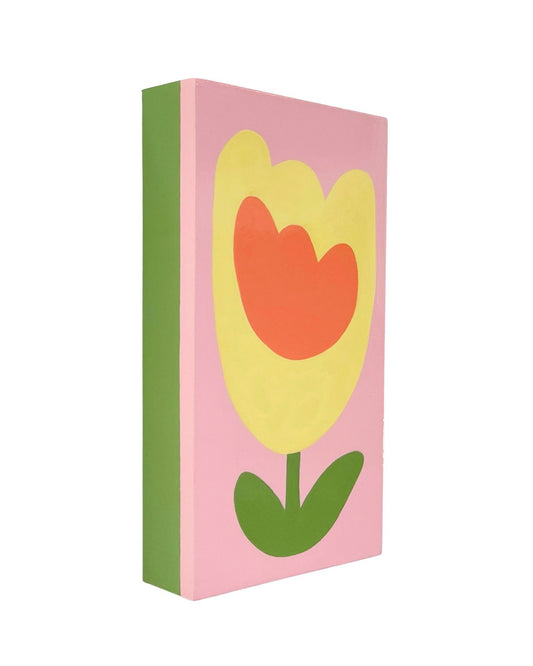 With a B.A. in Art Education and an M.F.A. in Surface Pattern Design, Michele's career began in textile design. While raising three boys, she continued designing on a freelance basis and created much of her family's home decor, blending art into daily life. Michele's work is deeply inspired by vintage aesthetics, especially mid-century design, cheerful color palettes and floral patterns. A collector of vintage paint-by -number art, this nostalgic influence is reflected in her clean, vibrant style. She paints primarily with gouache and acrylics, using a hard-edge technique built up in thin, smooth layers. Her goal is to create 'feel good florals' that strike a balance between vintage charm and modern aesthetic. Passionate about the way spaces affect mood, she infuses her art with a sense of joy and cozy optimism.