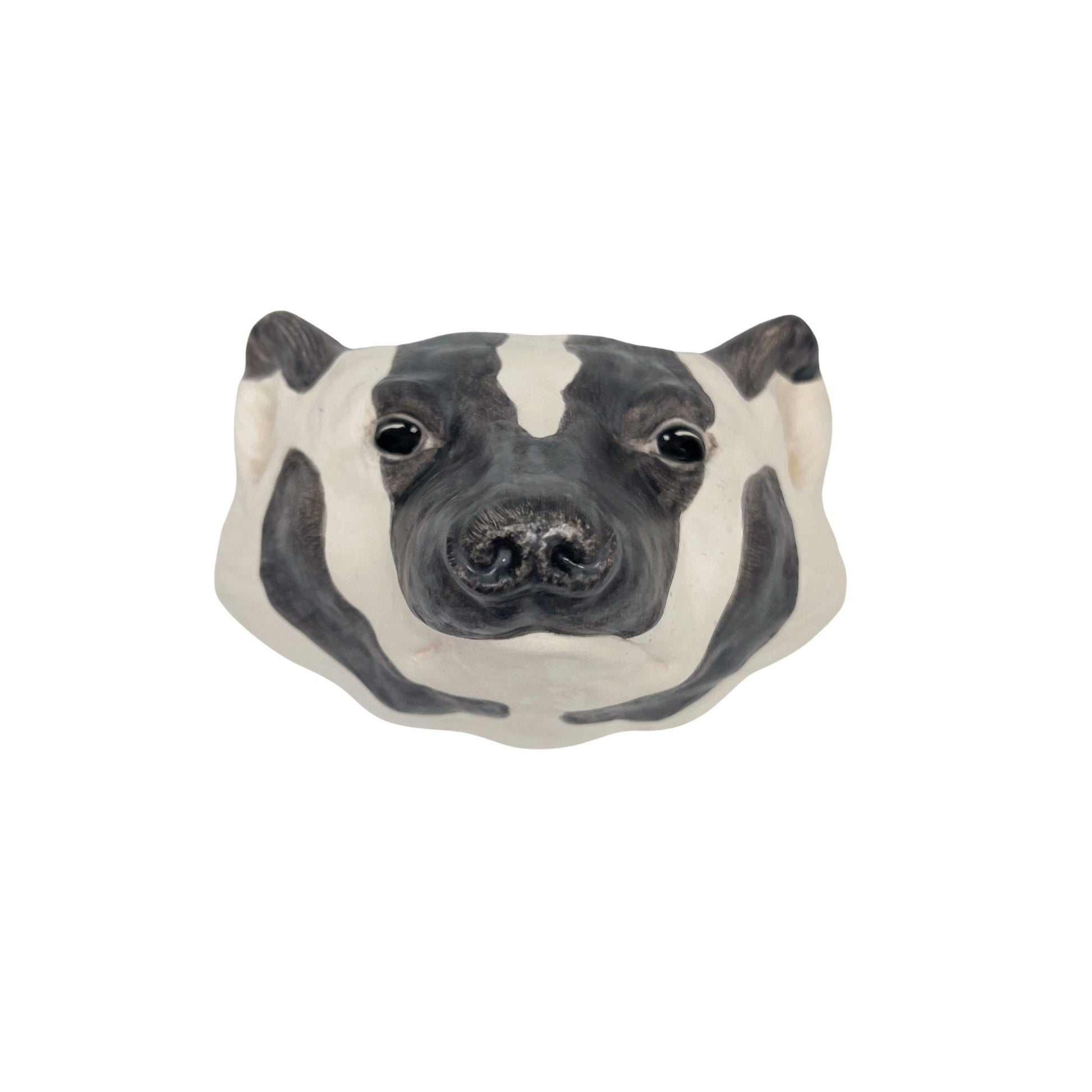 Julie Clements ceramic animal faces are slip casted and hand painted, making them one of a kind. The faces are meant to be hung on the wall and are stamped with the artist's initials on the inside.
