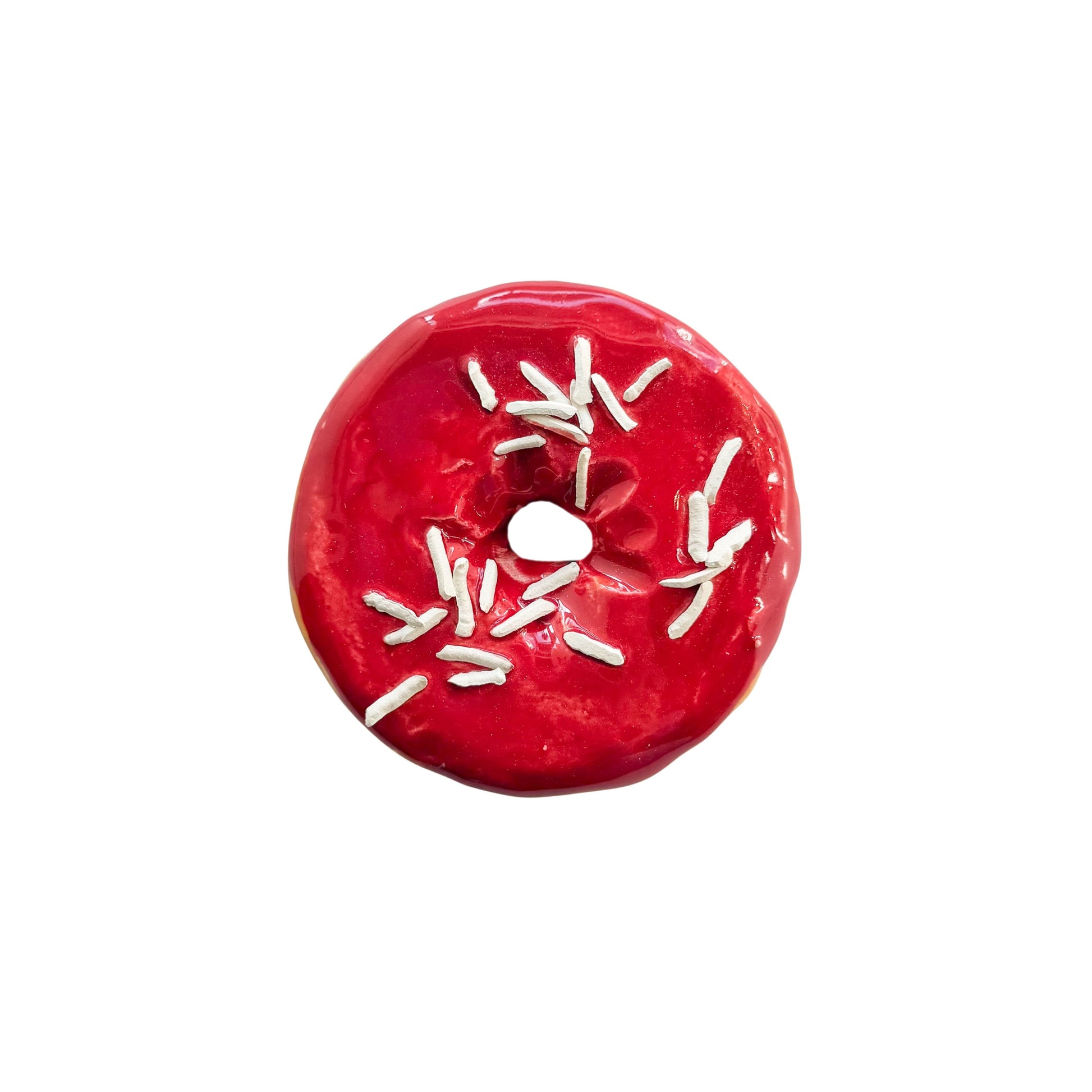 Jeff Nebeker's ceramic donuts are hand made by the artist, are one-of-a-kind, and may vary slightly from the picture. Each donut is stamped with the artist's signature and has a metal hanger glued to the back so it can easily be hung on a wall or displayed flat.