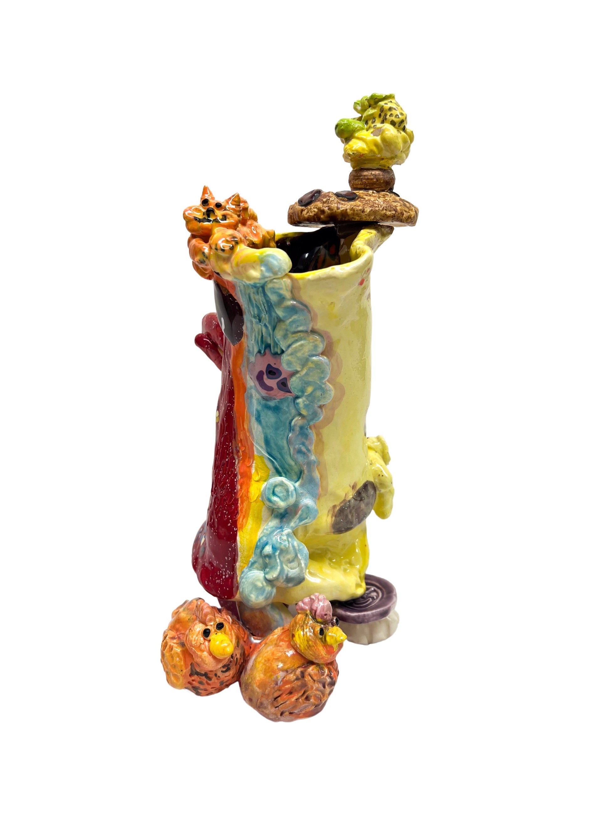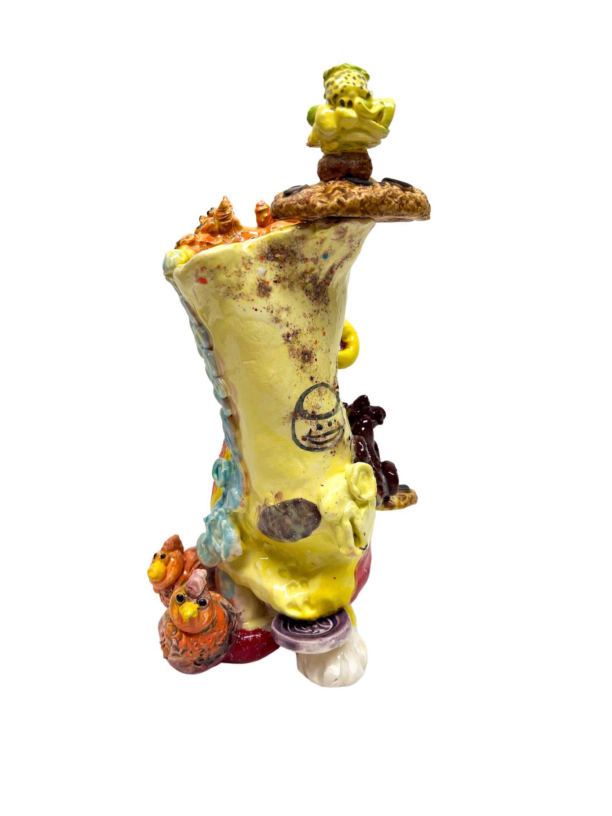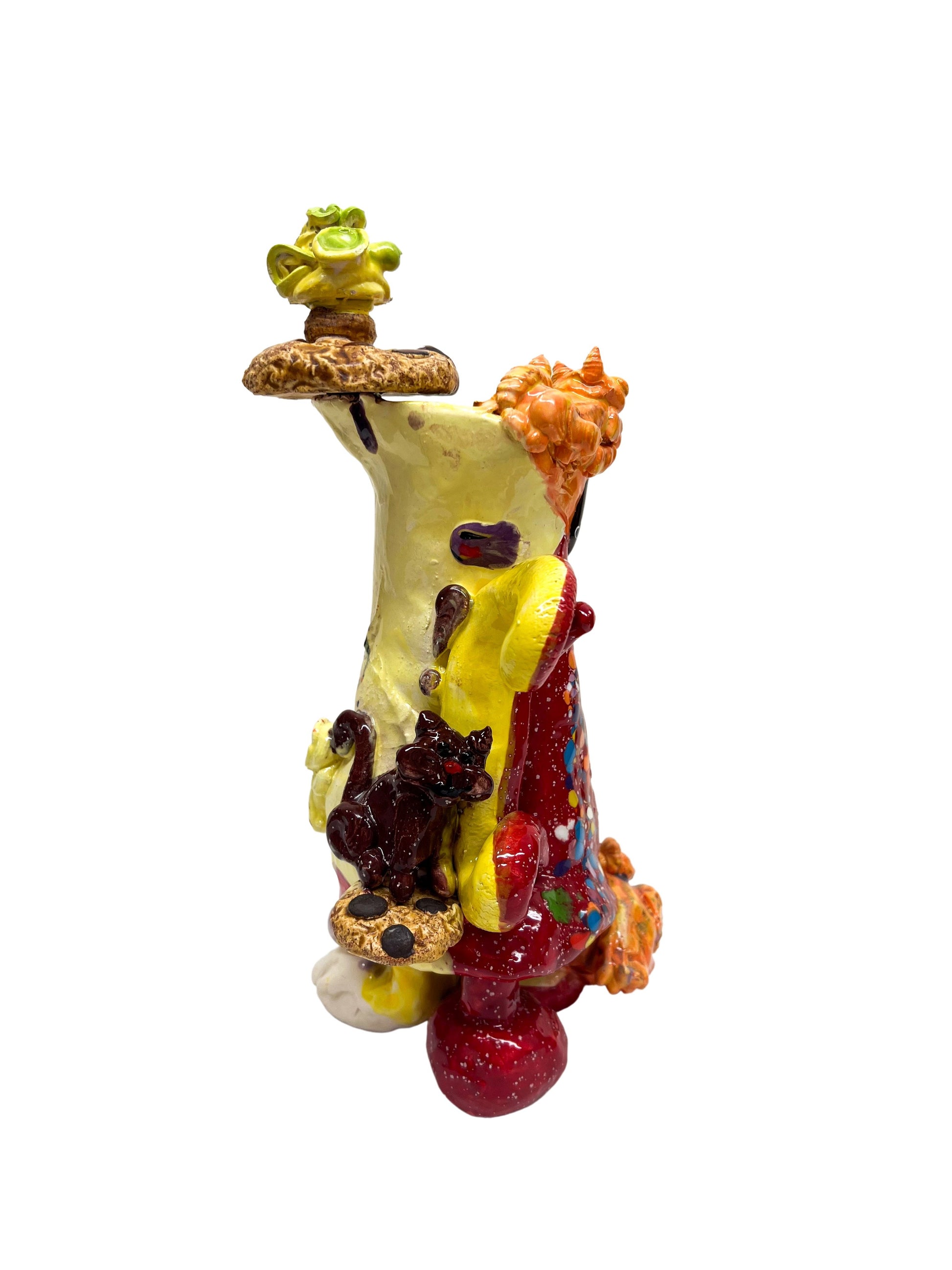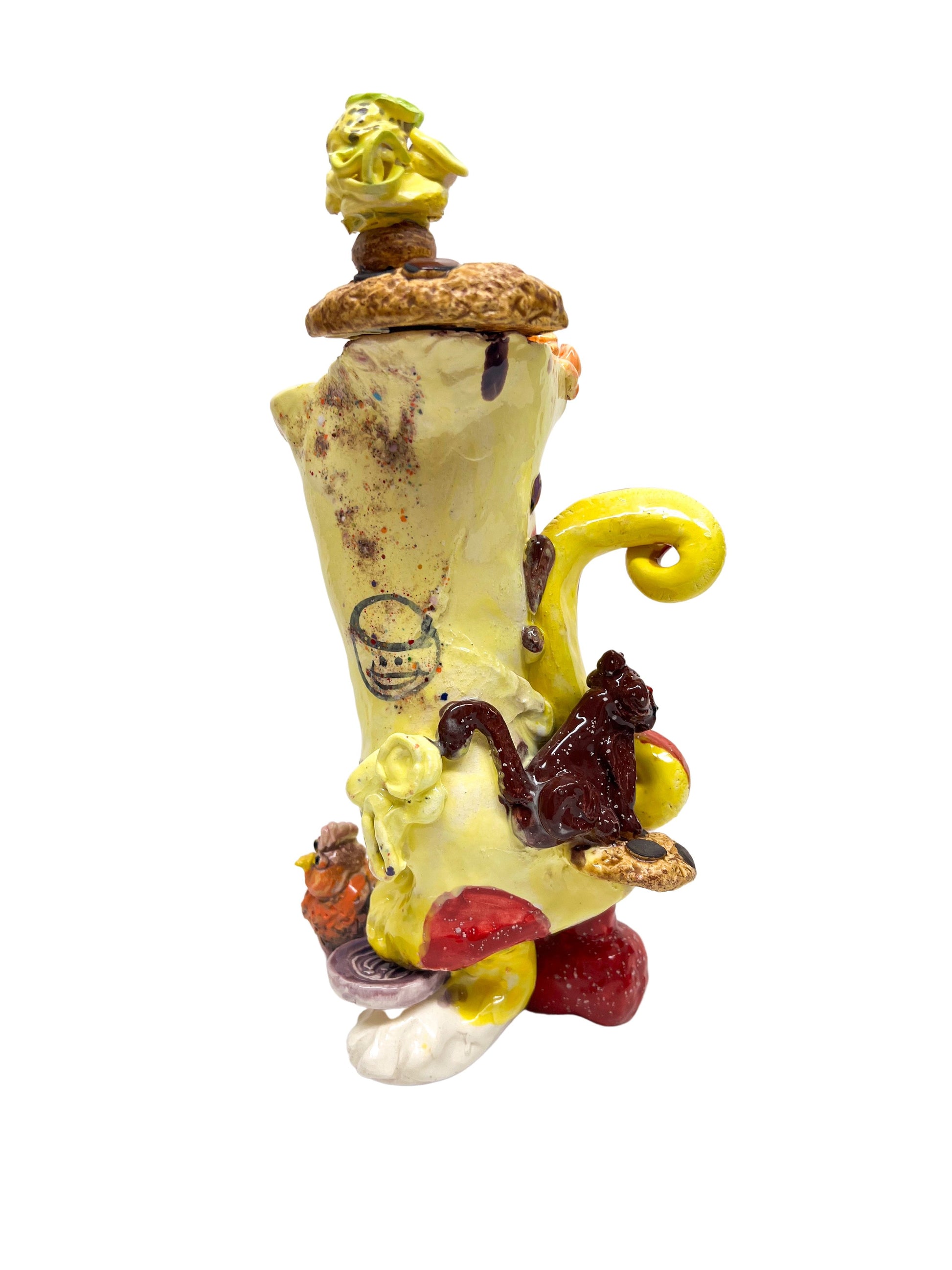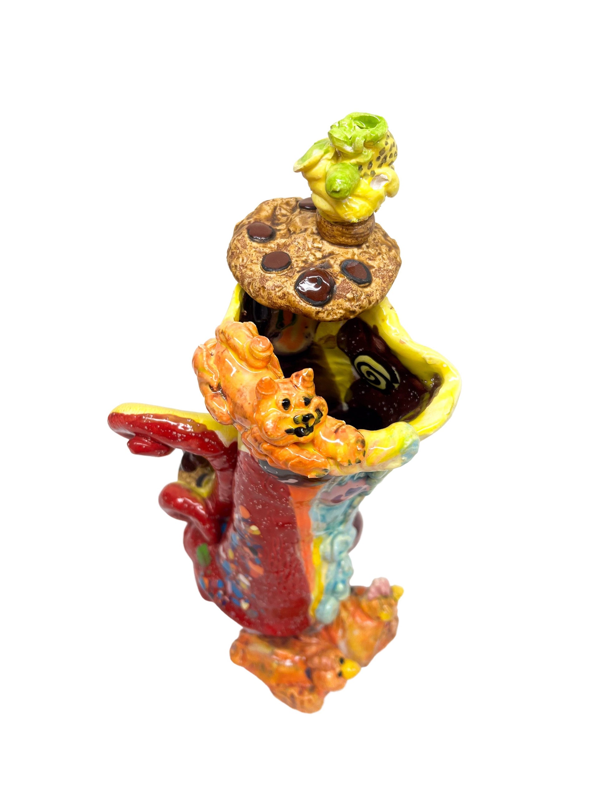 This sculpture by Jeff Nebeker is hand made by the artist and one-of-a-kind. The artist's signature is located on the bottom of the laughing pot.