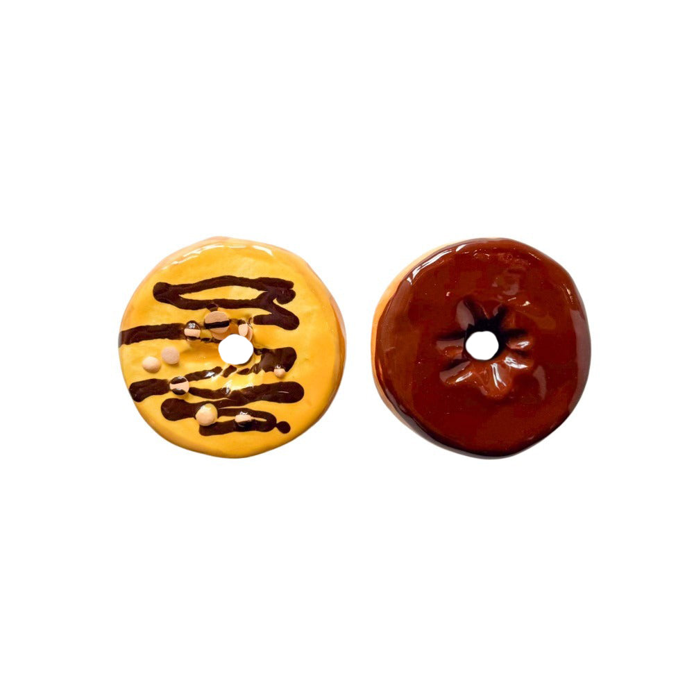 Jeff Nebeker's ceramic donuts are hand made by the artist, are one-of-a-kind, and may vary slightly from the picture. Each donut is stamped with the artist's signature and has a metal hanger glued to the back so it can easily be hung on a wall or displayed flat.