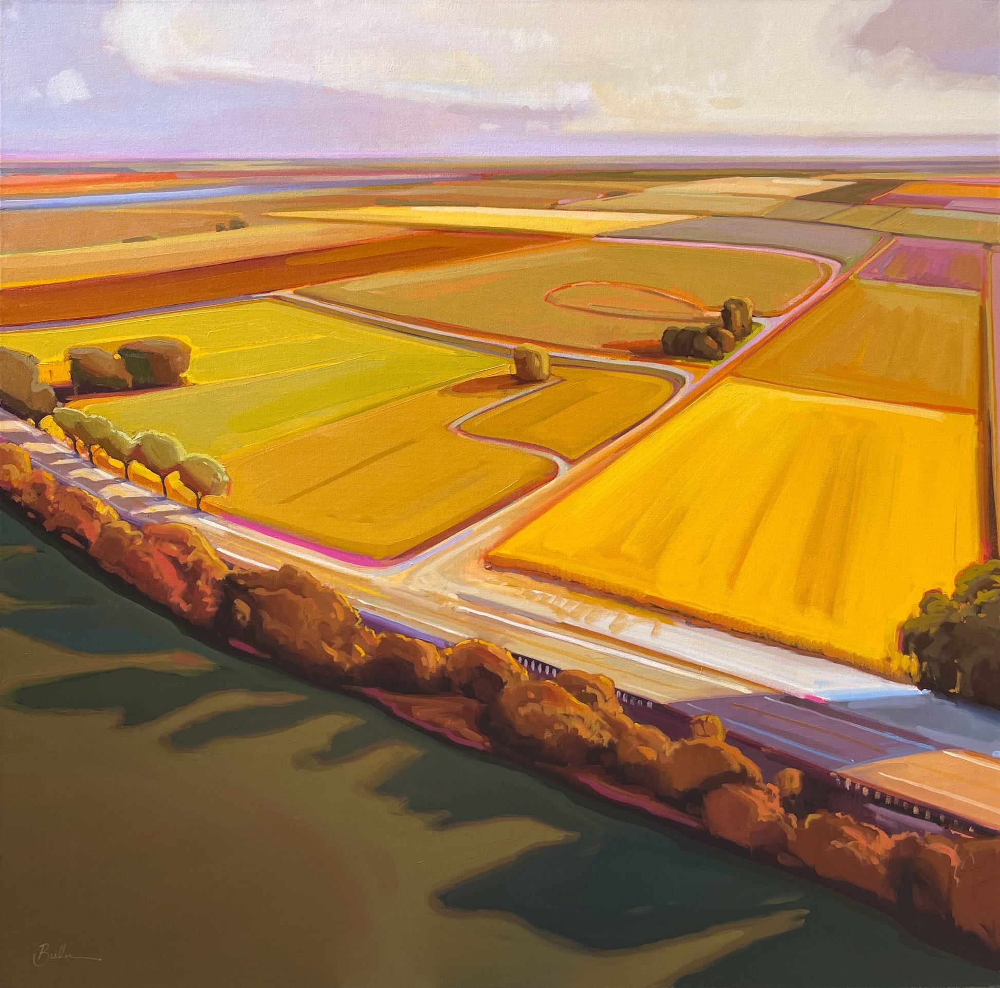 Golden Hour captures the landscape at its most luminous, when low light softens edges and casts everything in a warm, glowing haze. Samantha Buller’s aerial perspective enhances the quiet drama of this moment, where color and light gently shift across the land.