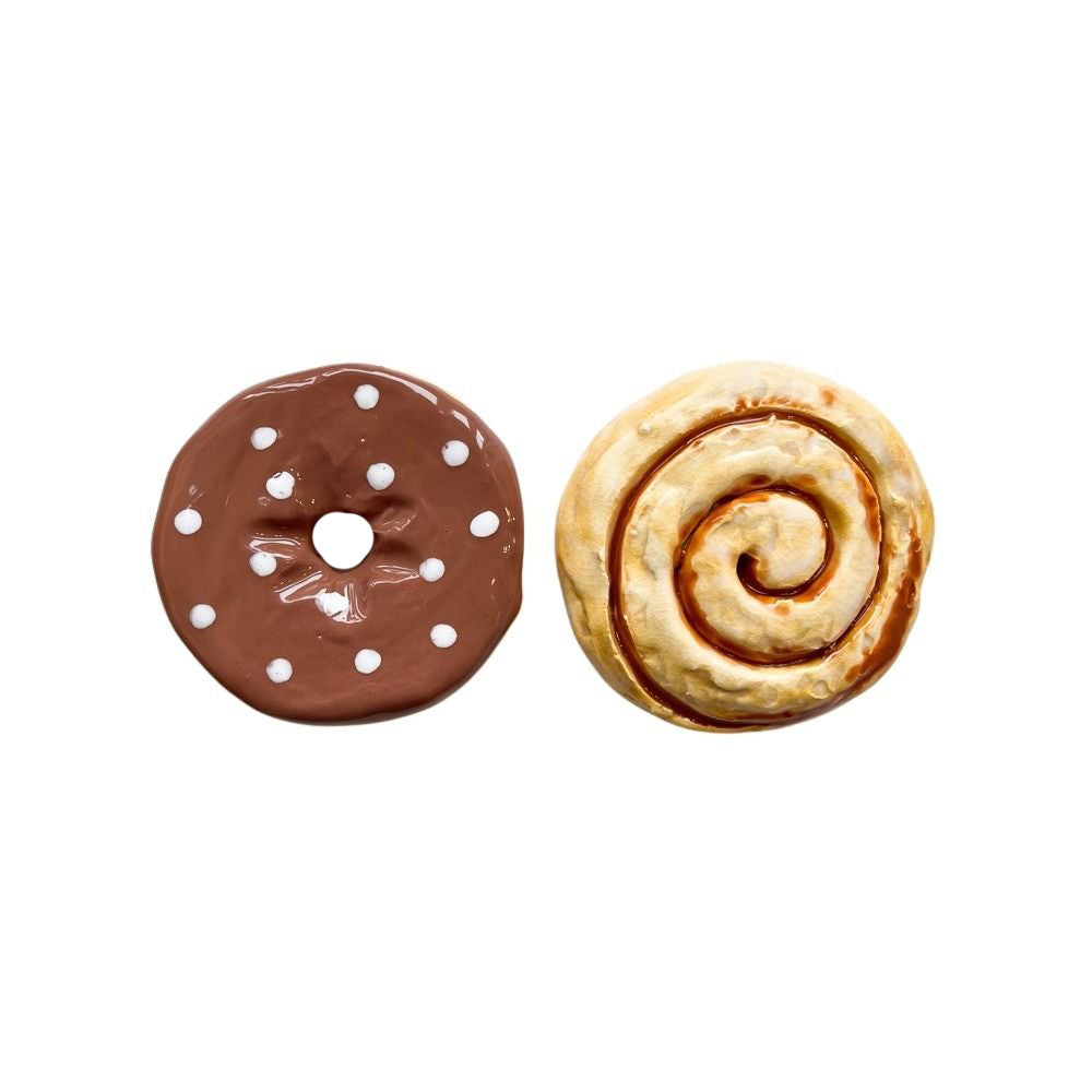 Jeff Nebeker's ceramic donuts are hand made by the artist, are one-of-a-kind, and may vary slightly from the picture. Each donut is stamped with the artist's signature and has a metal hanger glued to the back so it can easily be hung on a wall or displayed flat.