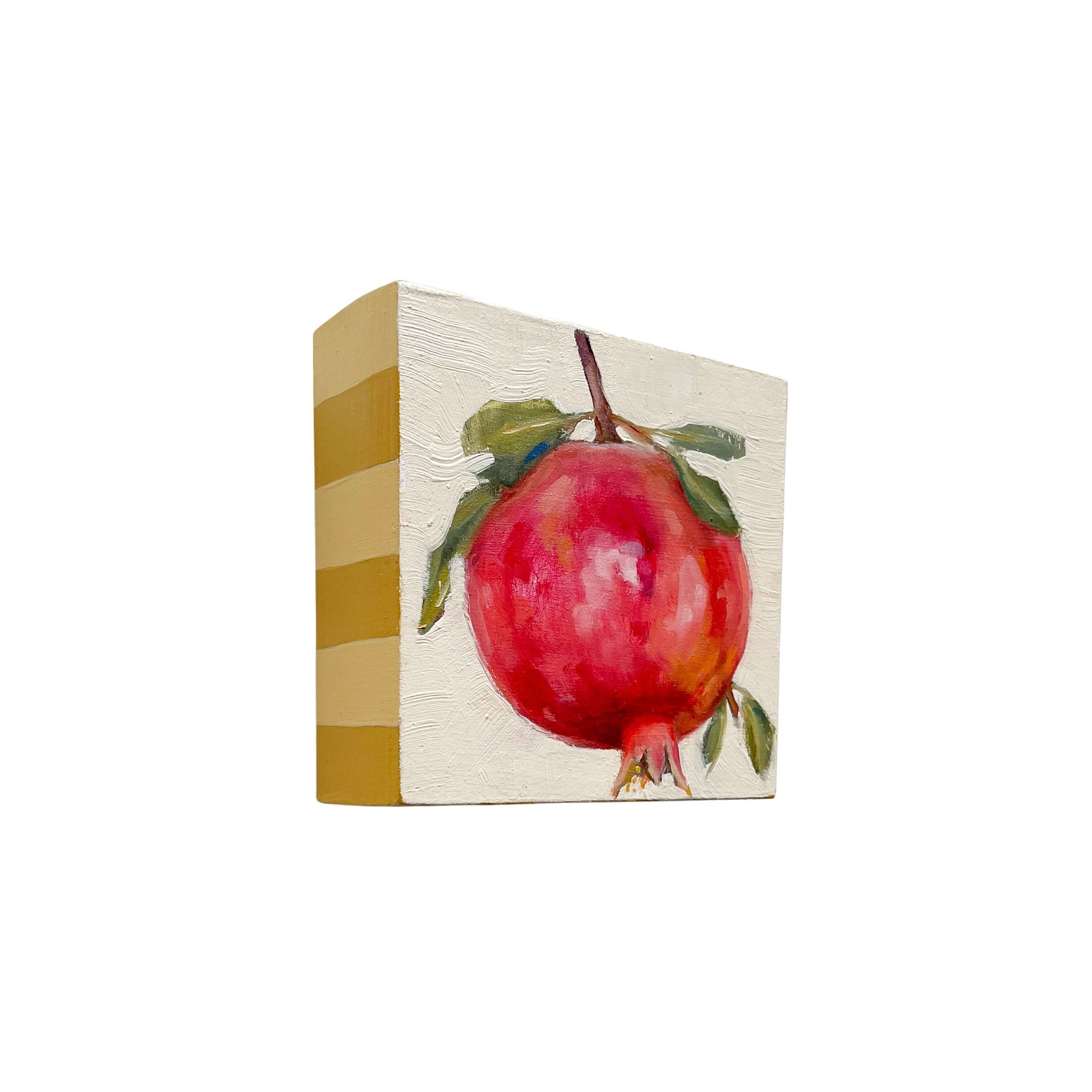 This original still life painting by Annai Smith is unframed and signed by the artist on the side of the painting, which is painted with stripes.