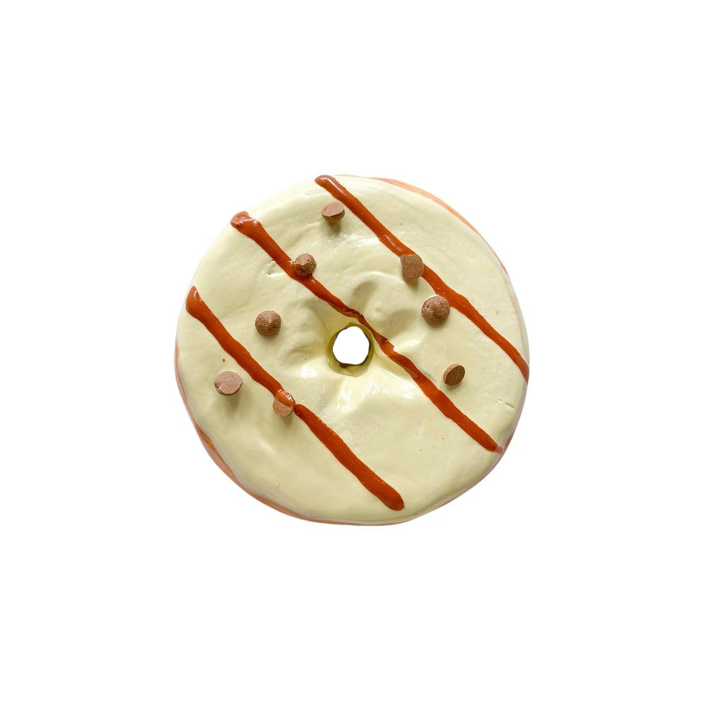 Jeff Nebeker's ceramic donuts are hand made by the artist, are one-of-a-kind, and may vary slightly from the picture. Each donut is stamped with the artist's signature and has a metal hanger glued to the back so it can easily be hung on a wall or displayed flat.