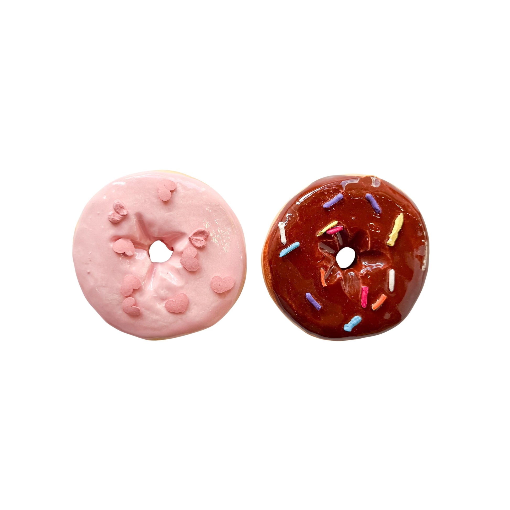 Jeff Nebeker's ceramic donuts are hand made by the artist, are one-of-a-kind, and may vary slightly from the picture. Each donut is stamped with the artist's signature and has a metal hanger glued to the back so it can easily be hung on a wall or displayed flat.