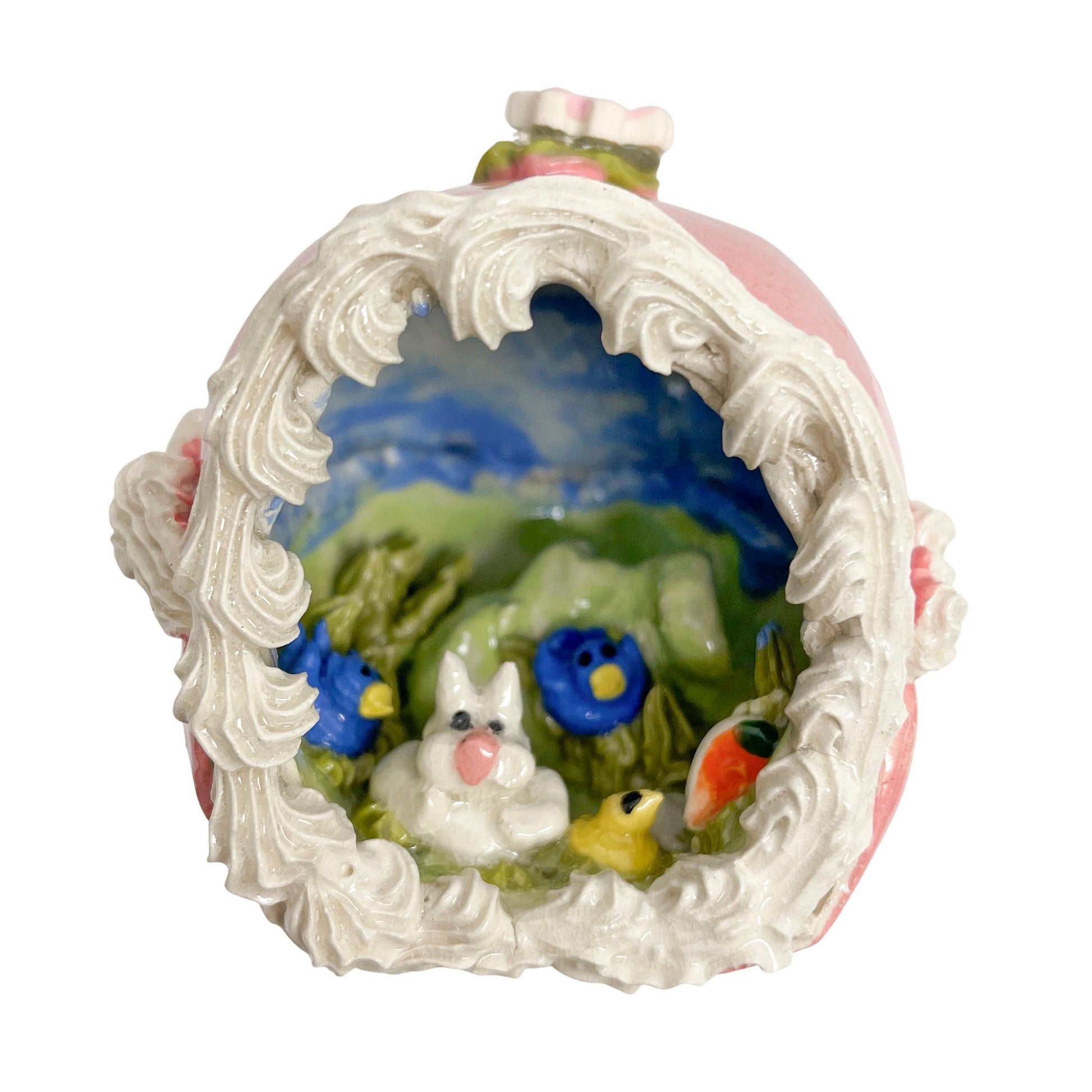 Jeff Nebeker's ceramic Panoramic Easter Eggs are hand made by the artist and one-of-a-kind. The artist's signature is located on the bottom of the egg and is meant to be displayed flat.