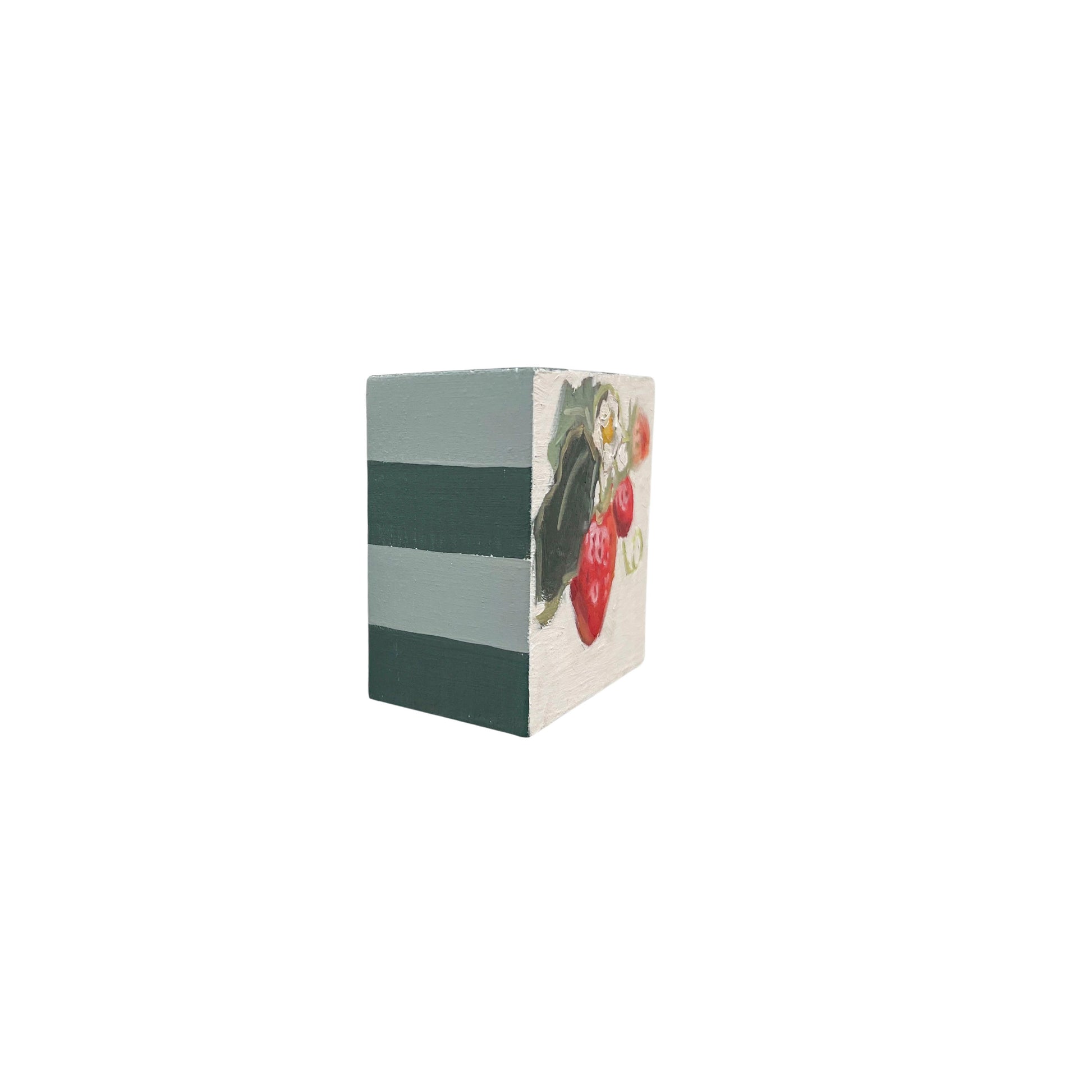 This original still life painting by Annai Smith is unframed and signed by the artist on the side of the painting, which is painted with stripes.