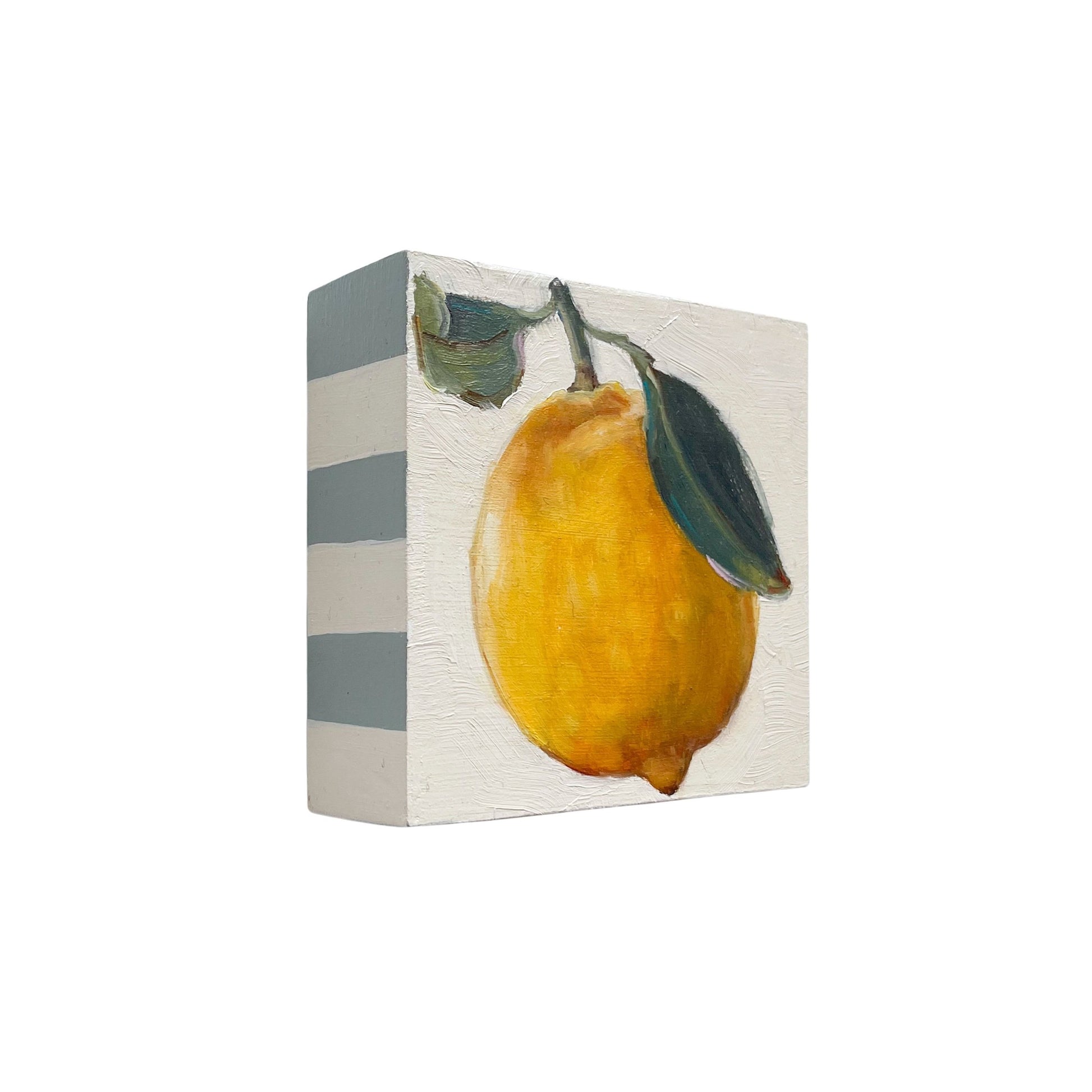 This original still life painting by Annai Smith is unframed and signed by the artist on the side of the painting, which is painted with stripes.