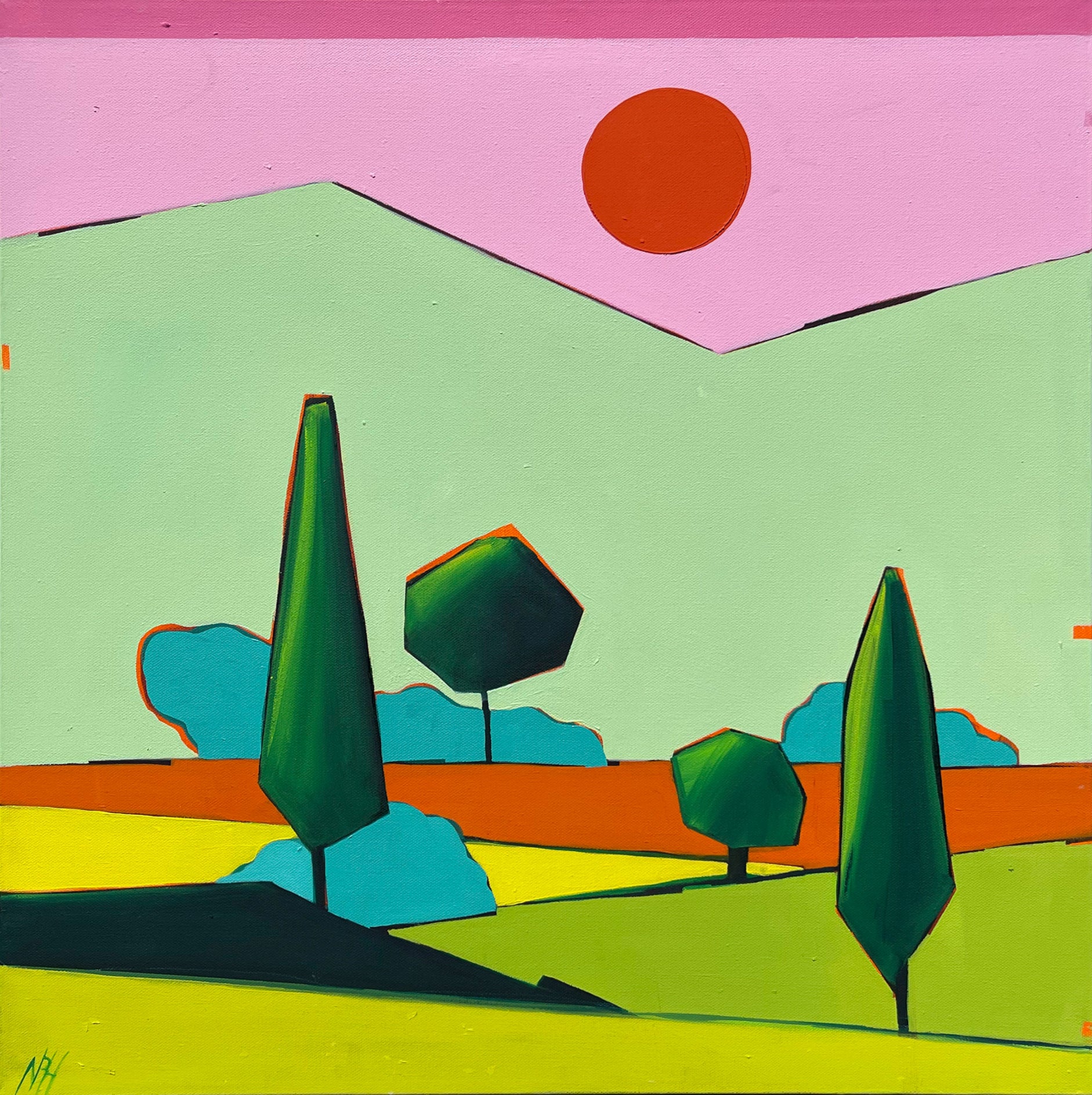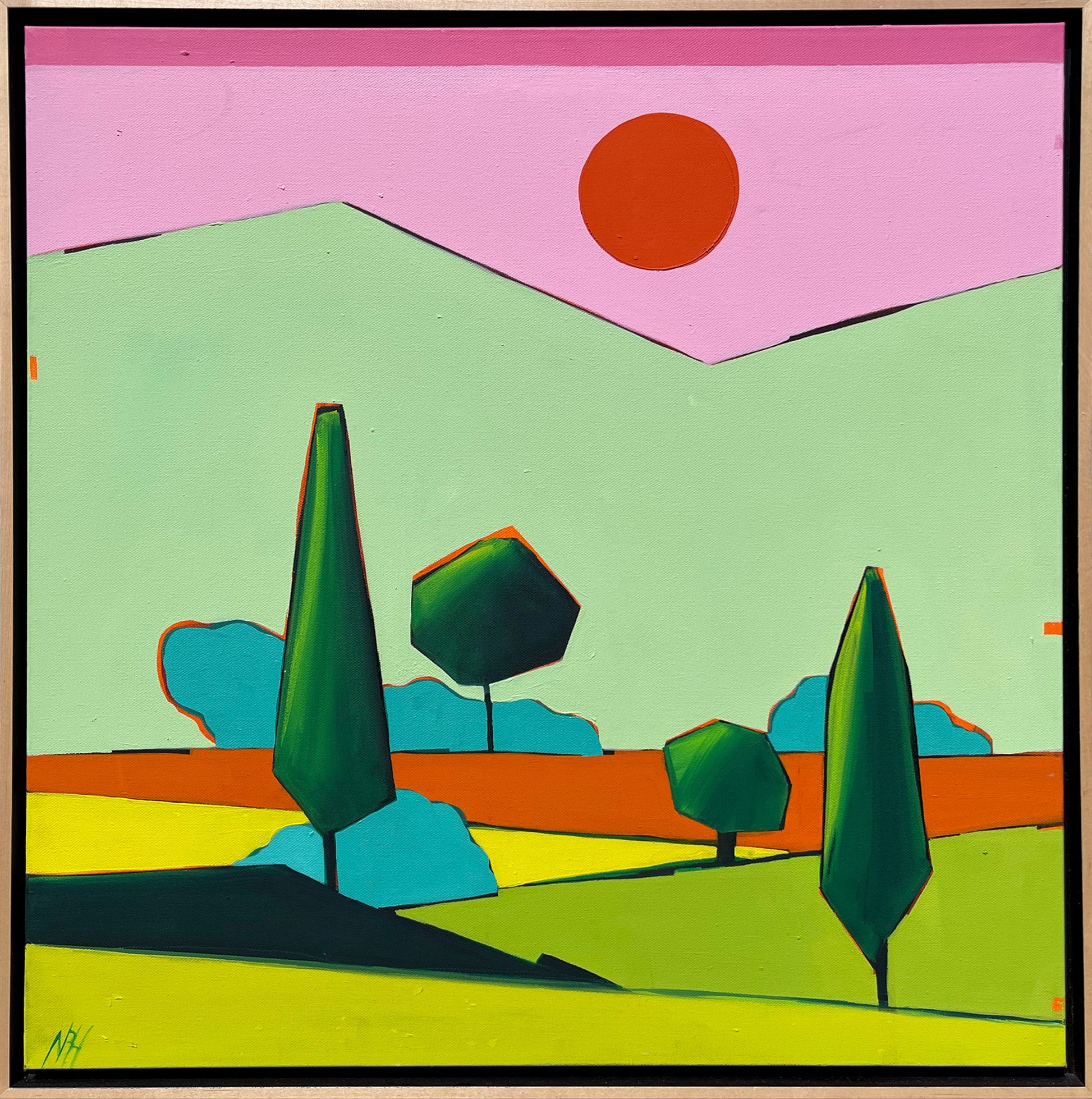 This original landscape painting by Nancy Hartley is framed and signed by the artist in the bottom corner of the painting.