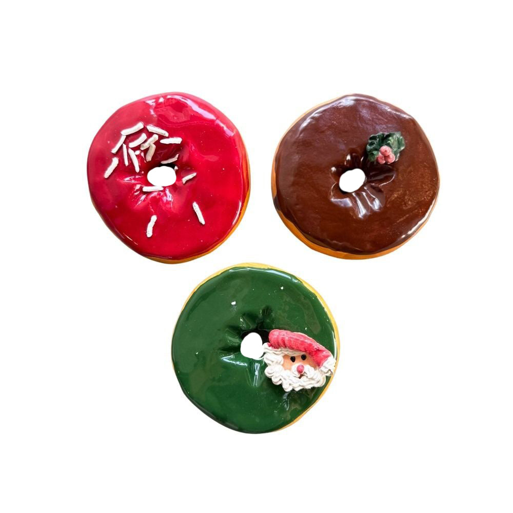 Jeff Nebeker's ceramic donuts are hand made by the artist, are one-of-a-kind, and may vary slightly from the picture. Each donut is stamped with the artist's signature and has a metal hanger glued to the back so it can easily be hung on a wall or displayed flat.