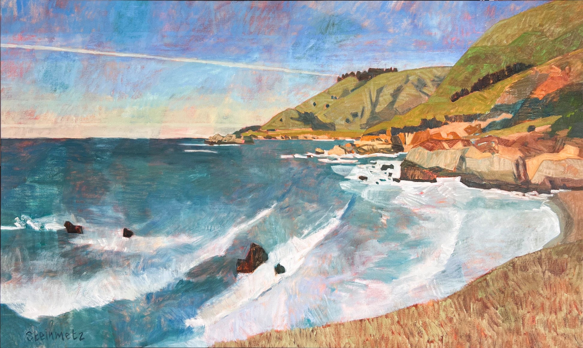 This original painting by Liana Steinmetz is unframed with painted edges for a finished, ready to hang look. The piece is signed by the artist in the bottom right corner of the painting.